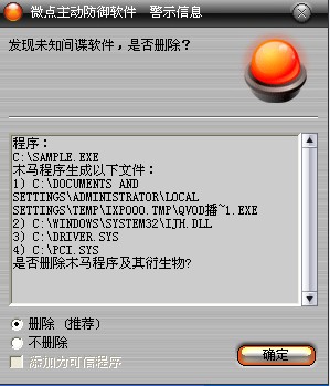 图1 微点主动防御软件自动捕获未知病毒(未升级)