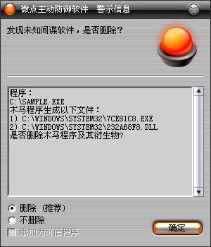 图1 微点主动防御软件自动捕获未知病毒(未升级)