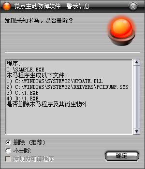 图1 微点主动防御软件自动捕获未知病毒(未升级)