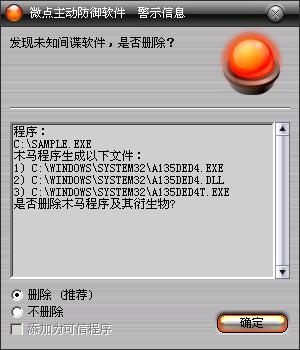 图1 微点主动防御软件自动捕获未知病毒(未升级)