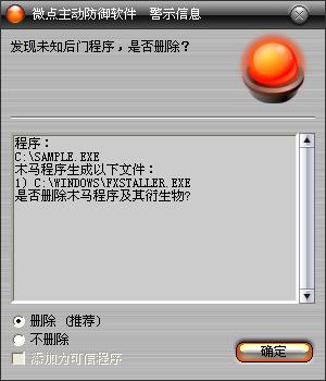 图1 微点主动防御软件自动捕获未知病毒(未升级)
