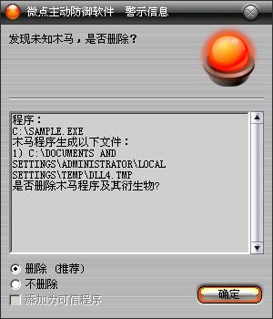 图1 微点主动防御软件自动捕获未知病毒(未升级)