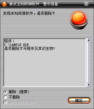 图1 微点主动防御软件自动捕获未知病毒(未升级)