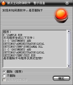 图1 微点主动防御软件自动捕获未知病毒(未升级)