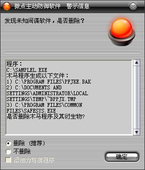 图1 微点主动防御软件自动捕获未知病毒(未升级)