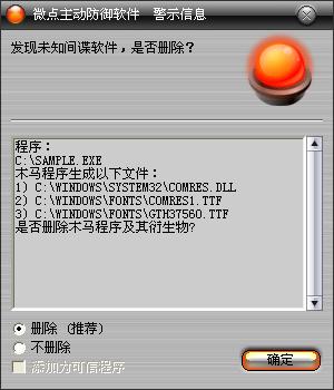 图1 微点主动防御软件自动捕获未知病毒(未升级)