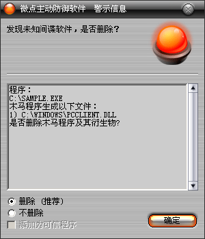 图1 微点主动防御软件自动捕获未知病毒(未升级)