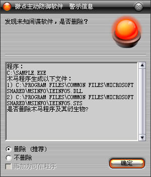 图1 微点主动防御软件自动捕获未知病毒(未升级)
