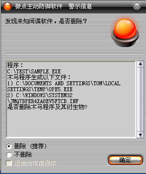 图1 微点主动防御软件自动捕获未知病毒(未升级)