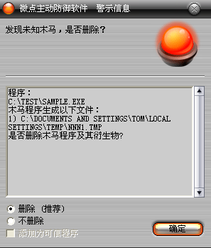 图1 微点主动防御软件自动捕获未知病毒(未升级)