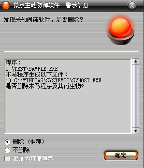 图1 微点主动防御软件自动捕获未知病毒(未升级)