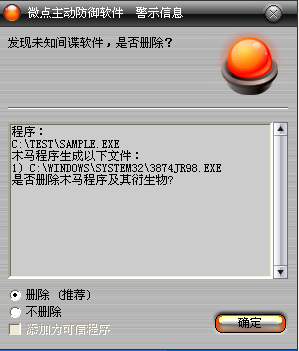 图1 微点主动防御软件自动捕获未知病毒(未升级)