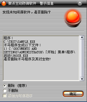 图1 微点主动防御软件自动捕获未知病毒(未升级)