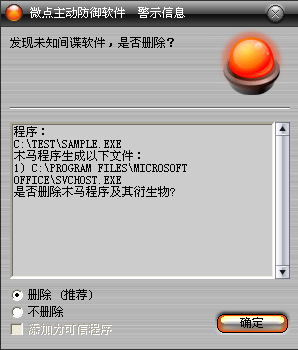 图1 微点主动防御软件自动捕获未知病毒(未升级)