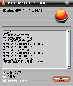 图1 微点主动防御软件自动捕获未知病毒(未升级)