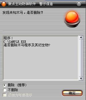 图1 微点主动防御软件自动捕获未知病毒(未升级)