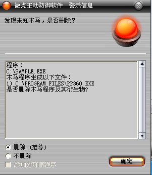 图1 微点主动防御软件自动捕获未知病毒(未升级)