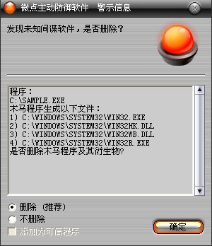 图1 微点主动防御软件自动捕获未知病毒(未升级)