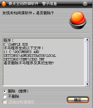 图1 微点主动防御软件自动捕获未知病毒(未升级)