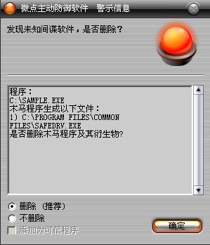 图1 微点主动防御软件自动捕获未知病毒(未升级)