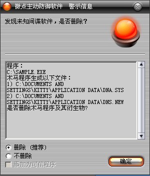 图1 微点主动防御软件自动捕获未知病毒(未升级)