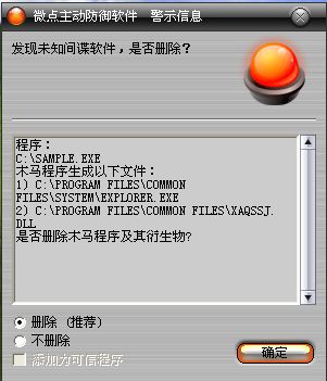 图1 微点主动防御软件自动捕获未知病毒(未升级)