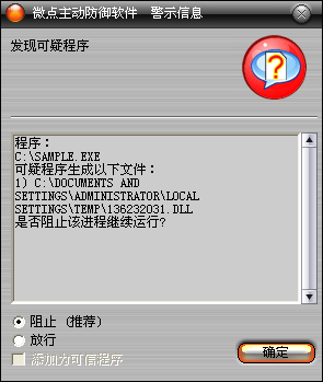 图1 微点主动防御软件自动捕获未知病毒(未升级)