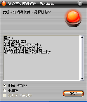 图1 微点主动防御软件自动捕获未知病毒(未升级)