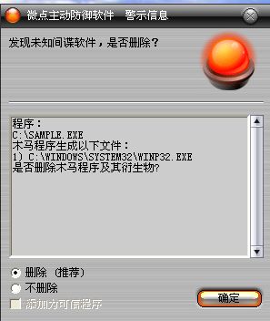 图1 微点主动防御软件自动捕获未知病毒(未升级)