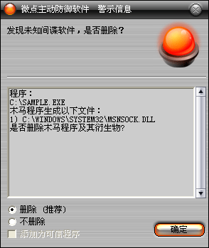 图1 微点主动防御软件自动捕获未知病毒(未升级)