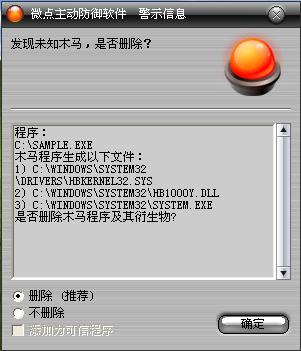 图1 微点主动防御软件自动捕获未知病毒(未升级)