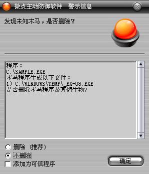 图1 微点主动防御软件自动捕获未知病毒(未升级)