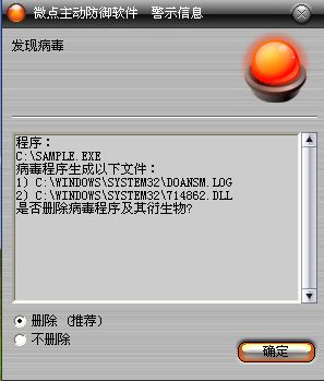 图1 微点主动防御软件自动捕获未知病毒(未升级)