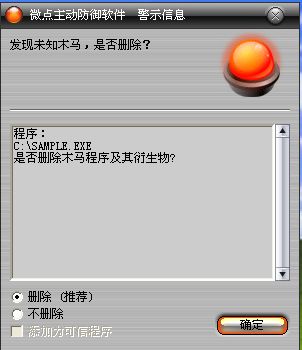 图1 微点主动防御软件自动捕获未知病毒(未升级)