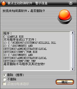 图1 微点主动防御软件自动捕获未知病毒(未升级)