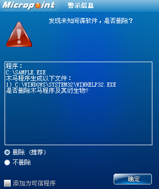 图1 微点主动防御软件自动捕获未知病毒(未升级)